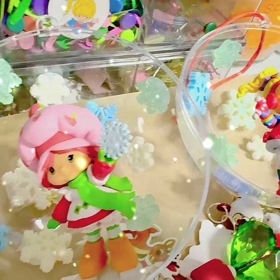 Have yourself a very merry yummy Christmas with this Strawberry Shortcake Christmas ornament! Strawberry Shortcake is about 3” tall and is inside a large 4” ornament globe that is permanently sealed so the snowflakes won’t fall out. Shake away!
